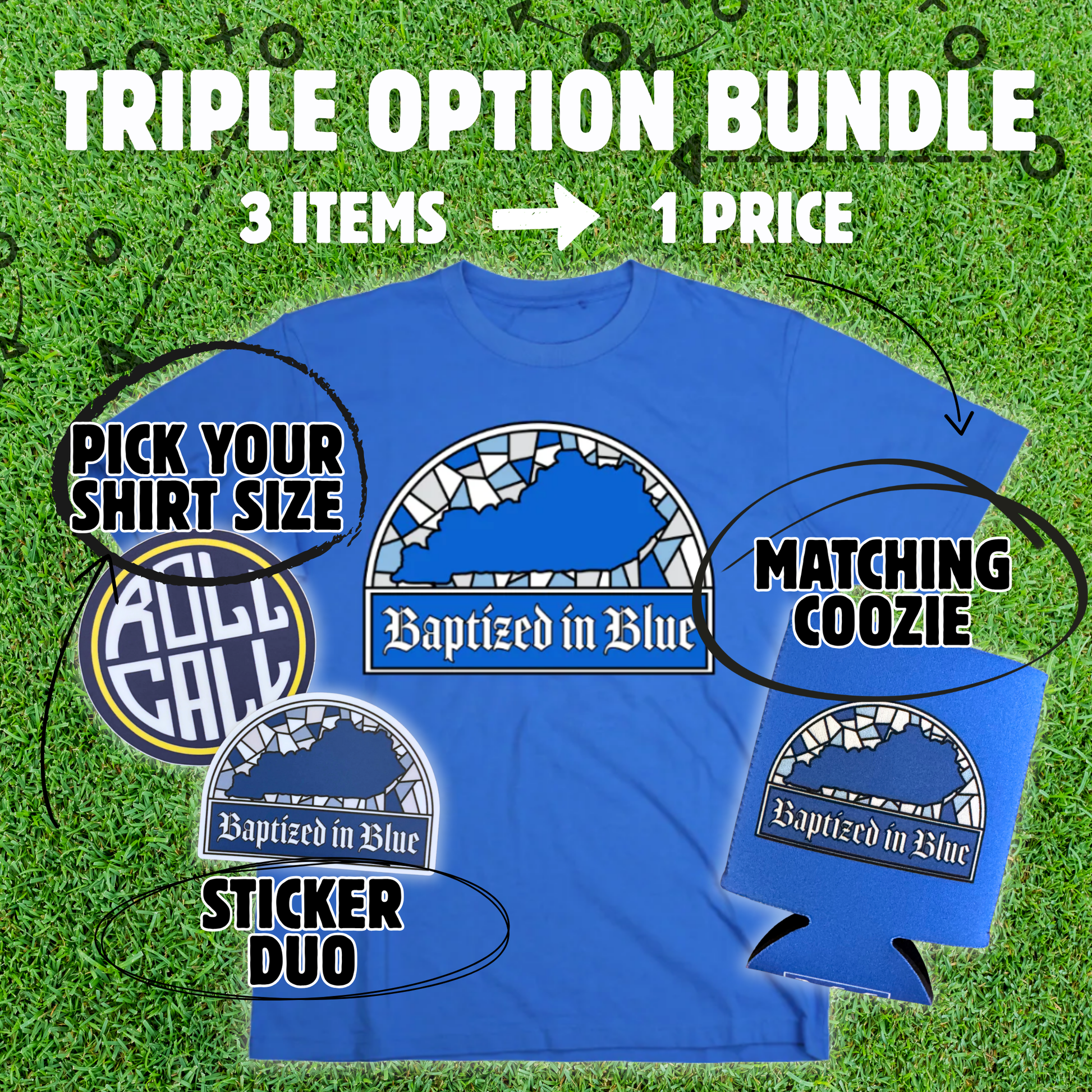 For the Kentucky fan who doesn’t just cheer for the Cats… you were practically born in a baptismal of Big Blue glory. This Triple Option Bundle is your all-in, no-huddle, run-right-at-’em starter kit for living the Bluegrass life the way the football gods intended.